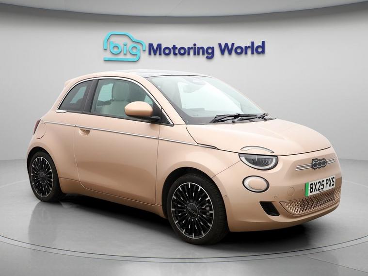 Our Fiat 500e is finished in Gold. Specification includes a range of fantastic features including Apple CarPlay, Adaptive Cruise Control, Rear View Camera, Internet, Bluetooth, Parking Sensors, Cruise Control, Climate Control, Keyless Go, DAB Radio Specification information is supplied by CAPHPI and may vary to the actual car. This data does not form any part of a buying contact. Please check specification prior to purchase in-store. The MOT is valid until May 2028, visit dealer's website for more photos, a 360 tour, service history and a free HPI report.