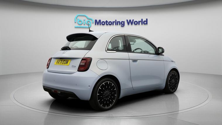Our Fiat 500e comes with optional extras worth £2, 920. Specification includes a range of fantastic features including Panoramic Roof, 17'' Alloy Wheels, Leather Seats, Apple CarPlay, Adaptive Cruise Control, Harman Kardon Speakers, Heated Seats, Rear View Camera, Internet, Bluetooth Specification information is supplied by CAPHPI and may vary to the actual car. This data does not form any part of a buying contact. Please check specification prior to purchase in-store. The MOT is valid until October 2026, visit dealer's website for more photos, a 360 tour, service history and a free HPI report.