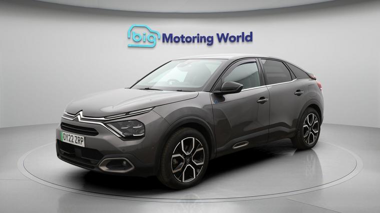 Our Citroen e-C4 is finished in Grey. Specification includes a range of fantastic features including £500 towards your finance deposit, Head up Display, 18'' alloy wheels, Heated Seats, Rear View Camera, Heated Steering Wheel, Bluetooth, Blind Spot Assist, Parking Sensors, Ambient Lighting Specification information is supplied by CAPHPI and may vary to the actual car. This data does not form any part of a buying contact. Please check specification prior to purchase in-store. The MOT is valid until December 2026, visit dealer's website for more photos, a 360 tour, service history and a free HPI report.