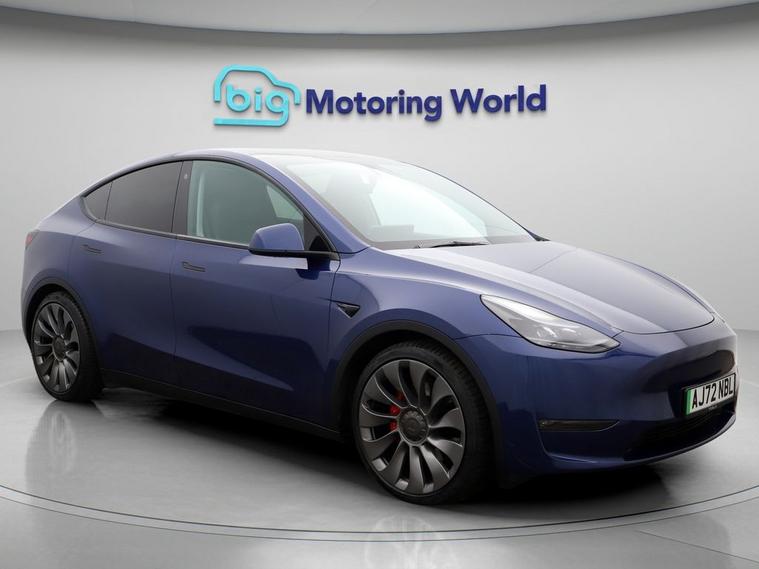 Our Tesla Model Y is finished in Blue. Specification includes a range of fantastic features including £500 towards your finance deposit, All Wheel Drive, 21'' Alloy Wheels, Heated Seats, Wireless Phone Charging, Rear View Camera, Heated Rear Seats, Heated Steering Wheel, Bluetooth, Blind Spot Assist Specification information is supplied by CAPHPI and may vary to the actual car. This data does not form any part of a buying contact. Please check specification prior to purchase in-store. The MOT is valid until December 2026, visit dealer's website for more photos, a 360 tour, service history and a free HPI report.