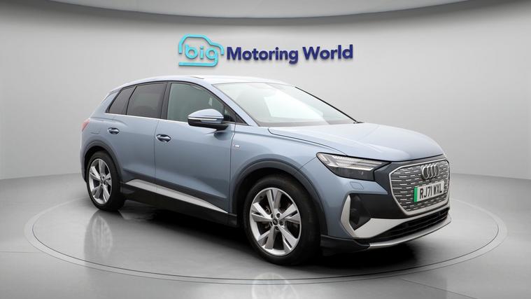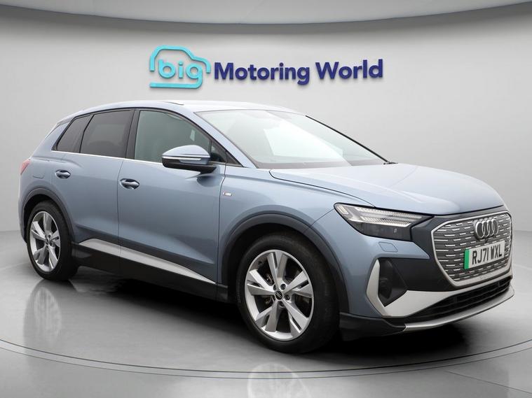 Our Audi Q4 e-tron is finished in Blue. Specification includes a range of fantastic features including £500 towards your finance deposit, Part Leather Seats, Apple CarPlay, Lane Assist, S Line Body Styling, Android Auto, Satellite Navigation, Privacy Glass, Heated Seats, Rear View Camera Specification information is supplied by CAPHPI and may vary to the actual car. This data does not form any part of a buying contact. Please check specification prior to purchase in-store. The MOT is valid until December 2026, visit dealer's website for more photos, a 360 tour, service history and a free HPI report.