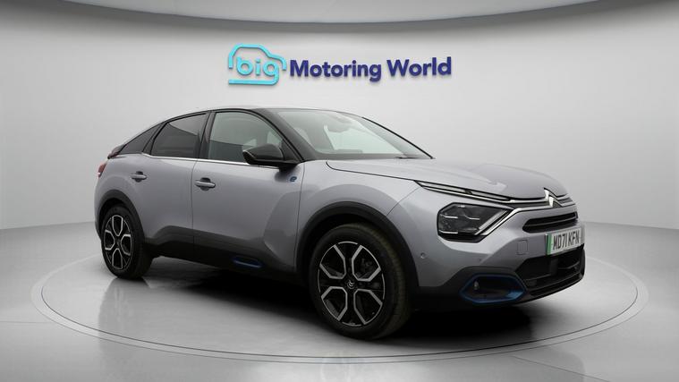 Our Citroen e-C4 is finished in Grey. Specification includes a range of fantastic features including £500 towards your finance deposit, Head up Display, 18'' alloy wheels, Heated Steering Wheel, Bluetooth, Blind Spot Assist, Ambient Lighting, 2 Zone Climate, DAB Radio , Touch Screen Control Specification information is supplied by CAPHPI and may vary to the actual car. This data does not form any part of a buying contact. Please check specification prior to purchase in-store. The MOT is valid until February 2027, visit dealer's website for more photos, a 360 tour, service history and a free HPI report.