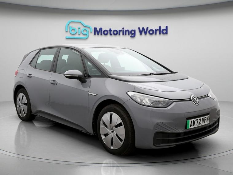 Our Volkswagen ID.3 is finished in Grey. Specification includes a range of fantastic features including £500 towards your finance deposit, Apple CarPlay, Android Auto, Satellite Navigation, Heated Seats, Heated Steering Wheel, Bluetooth, Parking Sensors, Flat Bottom Steering Wheel, 2 Zone Climate Specification information is supplied by CAPHPI and may vary to the actual car. This data does not form any part of a buying contact. Please check specification prior to purchase in-store. The MOT is valid until February 2027, visit dealer's website for more photos, a 360 tour, service history and a free HPI report.