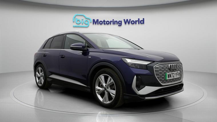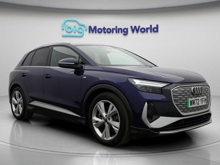 Our Audi Q4 e-tron is finished in Blue. Specification includes a range of fantastic features including £500 towards your finance deposit, Part Leather Seats, Apple CarPlay, Lane Assist, S Line Body Styling, Android Auto, Satellite Navigation, Privacy Glass, Heated Seats, Rear View Camera Specification information is supplied by CAPHPI and may vary to the actual car. This data does not form any part of a buying contact. Please check specification prior to purchase in-store. The MOT is valid until February 2027, visit dealer's website for more photos, a 360 tour, service history and a free HPI report.
