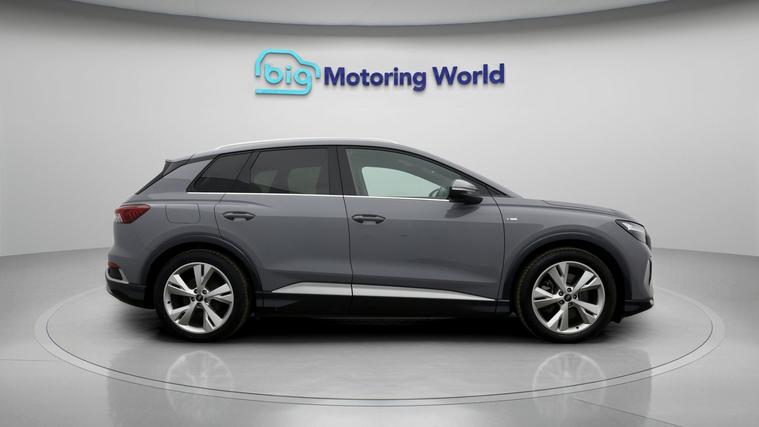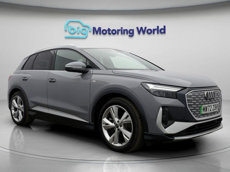 Our Audi Q4 e-tron is finished in Grey. Specification includes a range of fantastic features including £500 towards your finance deposit, Apple CarPlay, Lane Assist, S Line Body Styling, Android Auto, Satellite Navigation, Privacy Glass, Heated Seats, Bluetooth, Parking Sensors Specification information is supplied by CAPHPI and may vary to the actual car. This data does not form any part of a buying contact. Please check specification prior to purchase in-store. The MOT is valid until December 2026, visit dealer's website for more photos, a 360 tour, service history and a free HPI report.