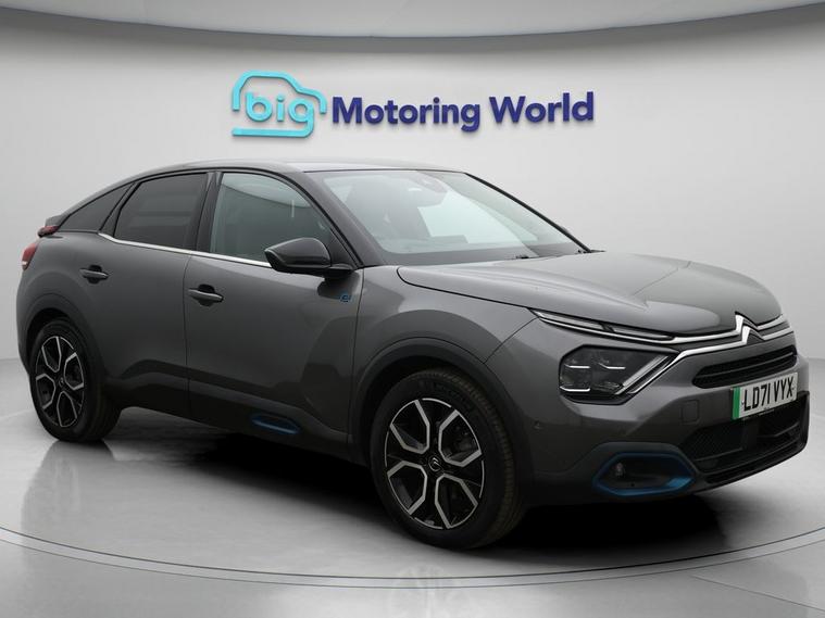 Our Citroen e-C4 is finished in Grey. Specification includes a range of fantastic features including £500 towards your finance deposit, Head up Display, 18'' alloy wheels, Heated Seats, Rear View Camera, Heated Steering Wheel, Bluetooth, Blind Spot Assist, Parking Sensors, Ambient Lighting Specification information is supplied by CAPHPI and may vary to the actual car. This data does not form any part of a buying contact. Please check specification prior to purchase in-store. The MOT is valid until December 2026, visit dealer's website for more photos, a 360 tour, service history and a free HPI report.