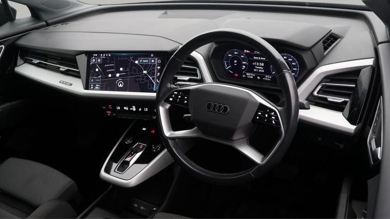 Our Audi Q4 e-tron is finished in Black. Specification includes a range of fantastic features including £500 towards your finance deposit, 19'' Alloy wheels, Digital Cockpit, Heated Seats, Virtual Cockpit, Rear View Camera, Bluetooth, Audi Connect, 3 Zone Climate, Keyless Go Specification information is supplied by CAPHPI and may vary to the actual car. This data does not form any part of a buying contact. Please check specification prior to purchase in-store. The MOT is valid until January 2027, visit dealer's website for more photos, a 360 tour, service history and a free HPI report.