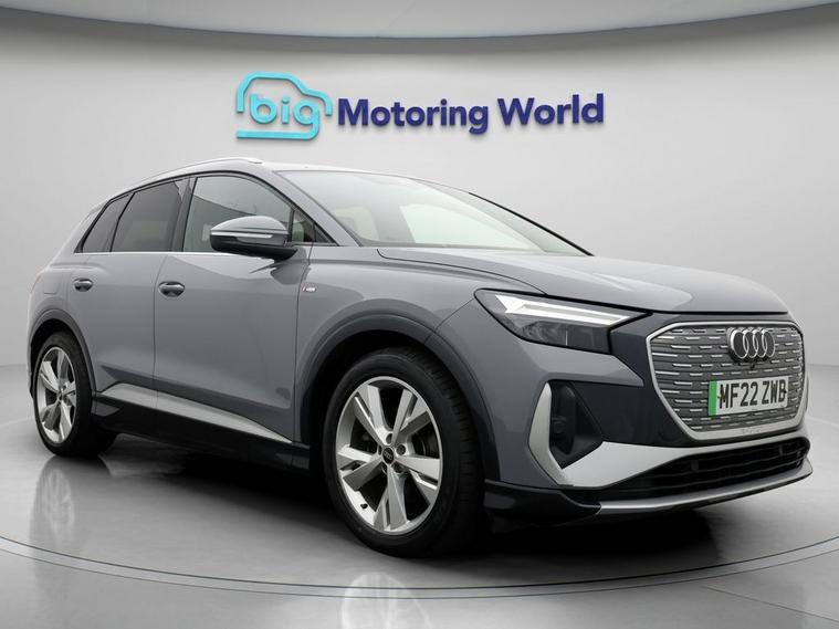 Our Audi Q4 e-tron is finished in Grey. Specification includes a range of fantastic features including £500 towards your finance deposit, Part Leather Seats, Lane Assist, S Line Body Styling, Satellite Navigation, Privacy Glass, Heated Seats, Rear View Camera, Bluetooth, Parking Sensors Specification information is supplied by CAPHPI and may vary to the actual car. This data does not form any part of a buying contact. Please check specification prior to purchase in-store. The MOT is valid until February 2027, visit dealer's website for more photos, a 360 tour, service history and a free HPI report.