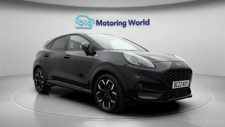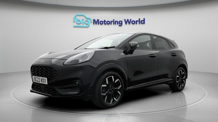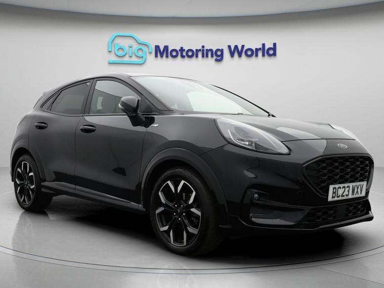 Our Ford Puma is finished in Black. Specification includes a range of fantastic features including Part Leather Seats, Lane Assist, Ford SYNC, Privacy Glass, ST Style Pack, Heated Windscreen, Bluetooth, Parking Sensors, Flat Bottom Steering Wheel, Powered Folding Mirrors Specification information is supplied by CAPHPI and may vary to the actual car. This data does not form any part of a buying contact. Please check specification prior to purchase in-store. The MOT is valid until February 2027, visit dealer's website for more photos, a 360 tour, service history and a free HPI report.