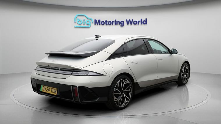 Our Hyundai IONIQ 6 is finished in Gold. Specification includes a range of fantastic features including £500 towards your finance deposit, 20'' Alloy Wheels, Apple CarPlay, Heated Seats, Wireless Phone Charging, Heated Steering Wheel, Bluetooth, Blind Spot Assist, Real Time Traffic Info, 2 Zone Climate Specification information is supplied by CAPHPI and may vary to the actual car. This data does not form any part of a buying contact. Please check specification prior to purchase in-store. The MOT is valid until April 2027, visit dealer's website for more photos, a 360 tour, service history and a free HPI report.