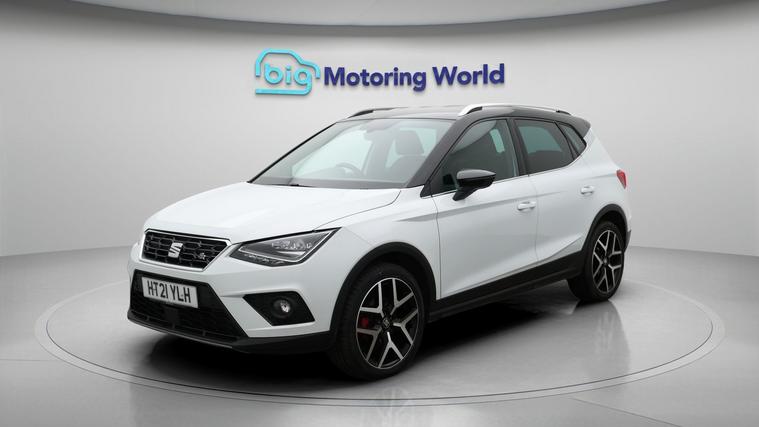 Our SEAT Arona is finished in White. Specification includes a range of fantastic features including Dynamic Chassis Control, 18'' alloy wheels, Apple CarPlay, Privacy Glass, Heated Seats, Bluetooth, Parking Sensors, Ambient Lighting, Flat Bottom Steering Wheel, 2 Zone Climate Specification information is supplied by CAPHPI and may vary to the actual car. This data does not form any part of a buying contact. Please check specification prior to purchase in-store. The MOT is valid until August 2026, visit dealer's website for more photos, a 360 tour, service history and a free HPI report.