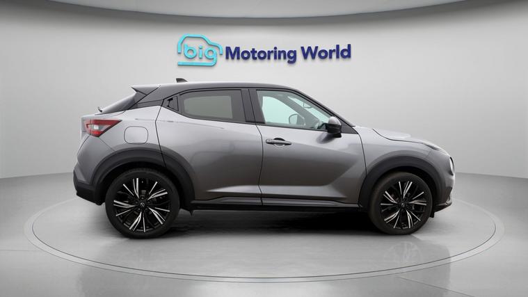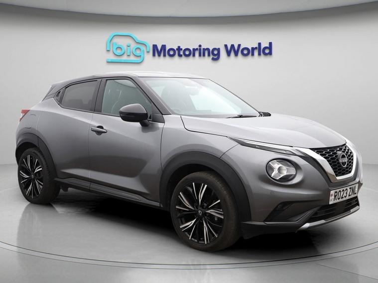 Our Nissan Juke is finished in Grey. Specification includes a range of fantastic features including 19'' Alloy wheels, Leather Seats, Privacy Glass, Heated Seats, Heated Windscreen, Rear View Camera, Bluetooth, Bose, Parking Sensors, Ambient Lighting Specification information is supplied by CAPHPI and may vary to the actual car. This data does not form any part of a buying contact. Please check specification prior to purchase in-store. The MOT is valid until November 2026, visit dealer's website for more photos, a 360 tour, service history and a free HPI report.