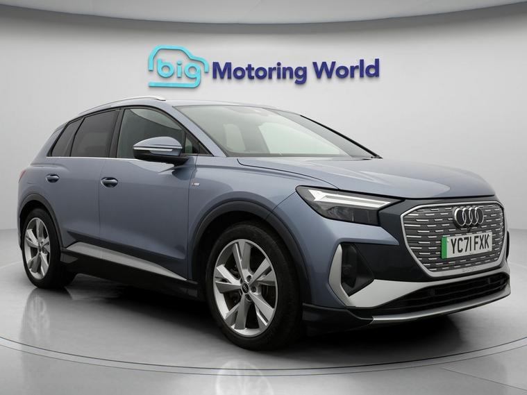 Our Audi Q4 e-tron is finished in Blue. Specification includes a range of fantastic features including £500 towards your finance deposit, Part Leather Seats, Lane Assist, S Line Body Styling, Satellite Navigation, Privacy Glass, Heated Seats, Bluetooth, Parking Sensors, Audi Connect Specification information is supplied by CAPHPI and may vary to the actual car. This data does not form any part of a buying contact. Please check specification prior to purchase in-store. The MOT is valid until November 2026, visit dealer's website for more photos, a 360 tour, service history and a free HPI report.