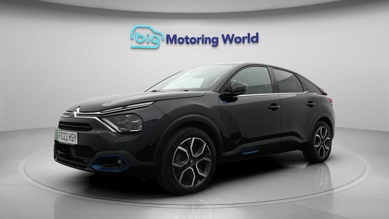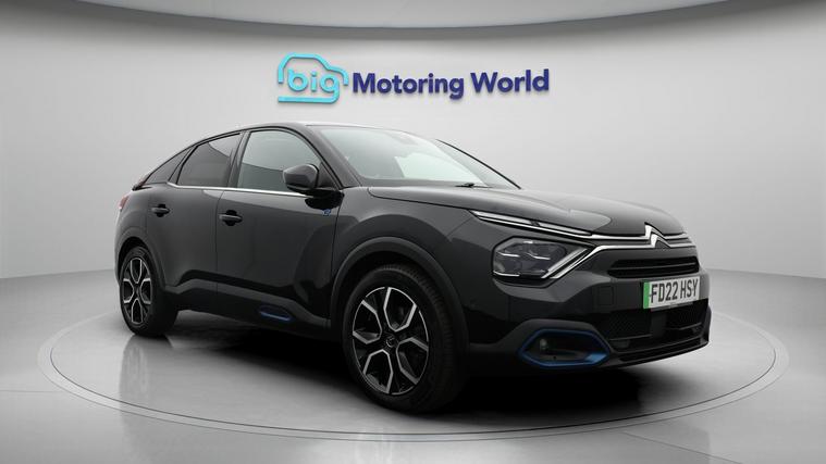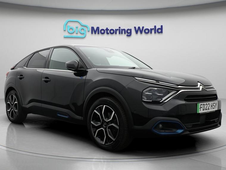 Our Citroen e-C4 is finished in Black. Specification includes a range of fantastic features including £500 towards your finance deposit, Head up Display, 18'' alloy wheels, Leather Seats, Satellite Navigation, Privacy Glass, Heated Seats, Heated Steering Wheel, Bluetooth, Blind Spot Assist Specification information is supplied by CAPHPI and may vary to the actual car. This data does not form any part of a buying contact. Please check specification prior to purchase in-store. The MOT is valid until March 2027, visit dealer's website for more photos, a 360 tour, service history and a free HPI report.