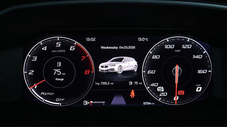 Our SEAT Leon is finished in Grey. Specification includes a range of fantastic features including 17'' Alloy Wheels, Apple CarPlay, Digital Cockpit, Lane Assist, Privacy Glass, Bluetooth, Parking Sensors, Flat Bottom Steering Wheel, Cruise Control, Climate Control Specification information is supplied by CAPHPI and may vary to the actual car. This data does not form any part of a buying contact. Please check specification prior to purchase in-store. The MOT is valid until February 2027, visit dealer's website for more photos, a 360 tour, service history and a free HPI report.