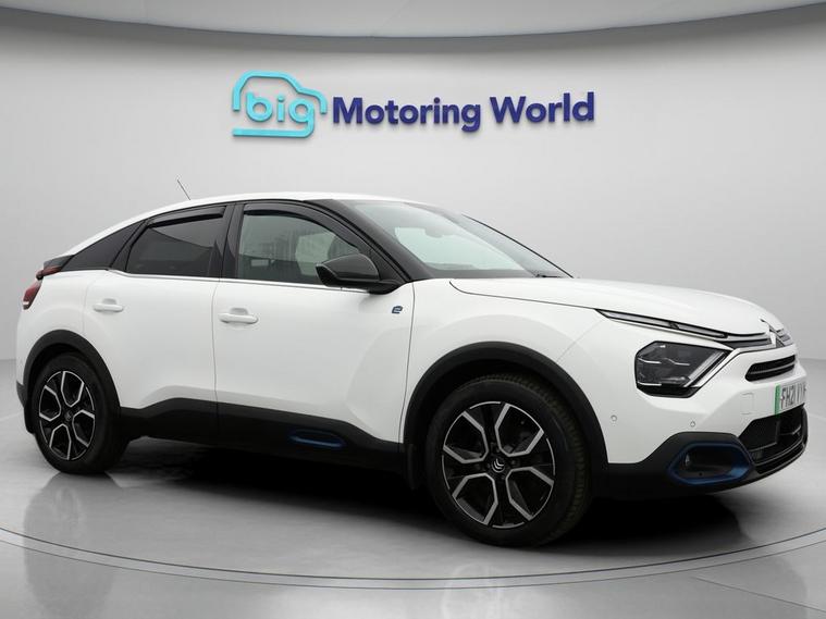 Our Citroen e-C4 is finished in White. Specification includes a range of fantastic features including £500 towards your finance deposit, Head up Display, 18'' alloy wheels, Privacy Glass, Heated Seats, Heated Steering Wheel, Bluetooth, Blind Spot Assist, Parking Sensors, Ambient Lighting Specification information is supplied by CAPHPI and may vary to the actual car. This data does not form any part of a buying contact. Please check specification prior to purchase in-store. The MOT is valid until February 2027, visit dealer's website for more photos, a 360 tour, service history and a free HPI report.
