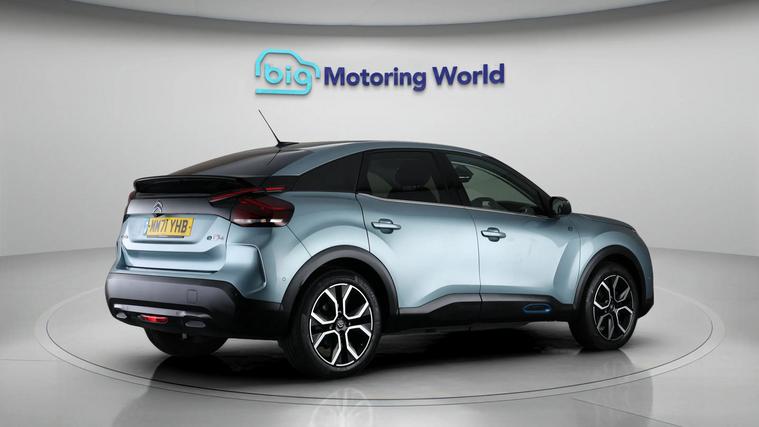 Our Citroen e-C4 is finished in Blue. Specification includes a range of fantastic features including £500 towards your finance deposit, Head up Display, 18'' alloy wheels, Heated Steering Wheel, Bluetooth, Blind Spot Assist, Ambient Lighting, 2 Zone Climate, DAB Radio , Touch Screen Control Specification information is supplied by CAPHPI and may vary to the actual car. This data does not form any part of a buying contact. Please check specification prior to purchase in-store. The MOT is valid until November 2026, visit dealer's website for more photos, a 360 tour, service history and a free HPI report.
