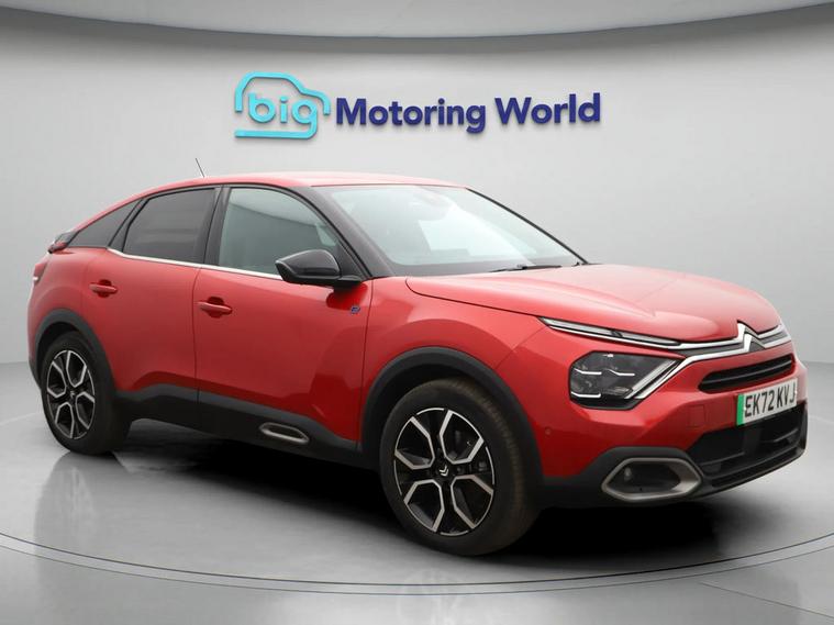 Our Citroen e-C4 is finished in Red. Specification includes a range of fantastic features including £500 towards your finance deposit, Head up Display, 18'' alloy wheels, Heated Seats, Heated Steering Wheel, Bluetooth, Blind Spot Assist, Parking Sensors, Ambient Lighting, 2 Zone Climate Specification information is supplied by CAPHPI and may vary to the actual car. This data does not form any part of a buying contact. Please check specification prior to purchase in-store. The MOT is valid until February 2027, visit dealer's website for more photos, a 360 tour, service history and a free HPI report.