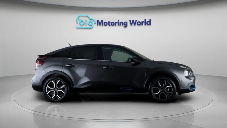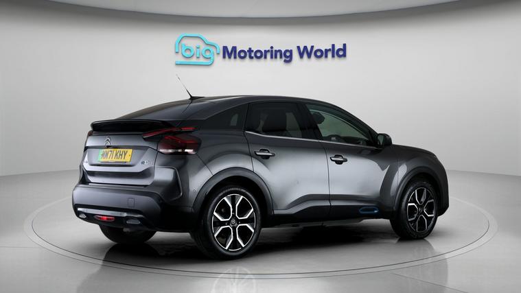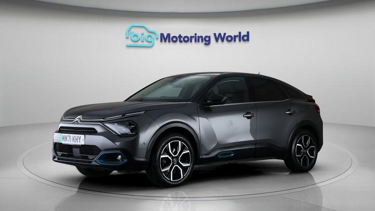 Our Citroen e-C4 is finished in Grey. Specification includes a range of fantastic features including £500 towards your finance deposit, Head up Display, 18'' alloy wheels, Heated Steering Wheel, Bluetooth, Blind Spot Assist, Ambient Lighting, 2 Zone Climate, DAB Radio , Touch Screen Control Specification information is supplied by CAPHPI and may vary to the actual car. This data does not form any part of a buying contact. Please check specification prior to purchase in-store. The MOT is valid until February 2027, visit dealer's website for more photos, a 360 tour, service history and a free HPI report.