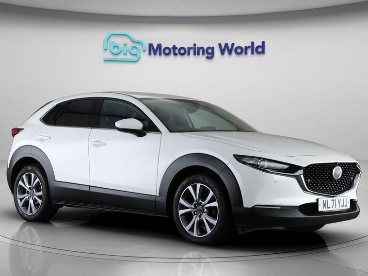 Our Mazda CX-30 is finished in White. Specification includes a range of fantastic features including 18'' alloy wheels, Leather Seats, Adaptive Cruise Control, Privacy Glass, Heated Seats, Heated Steering Wheel, Bluetooth, Blind Spot Assist, Bose, Parking Sensors Specification information is supplied by CAPHPI and may vary to the actual car. This data does not form any part of a buying contact. Please check specification prior to purchase in-store. The MOT is valid until November 2026, visit dealer's website for more photos, a 360 tour, service history and a free HPI report.