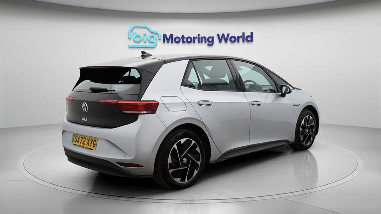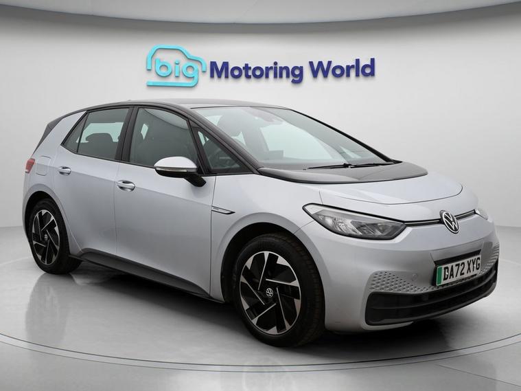 Our Volkswagen ID.3 is finished in Silver. Specification includes a range of fantastic features including £500 towards your finance deposit, Adaptive Cruise Control, Lane Assist, TV, Bluetooth, Blind Spot Assist, Parking Sensors, Cruise Control, Keyless Go, Voice Control Specification information is supplied by CAPHPI and may vary to the actual car. This data does not form any part of a buying contact. Please check specification prior to purchase in-store. The MOT is valid until December 2026, visit dealer's website for more photos, a 360 tour, service history and a free HPI report.