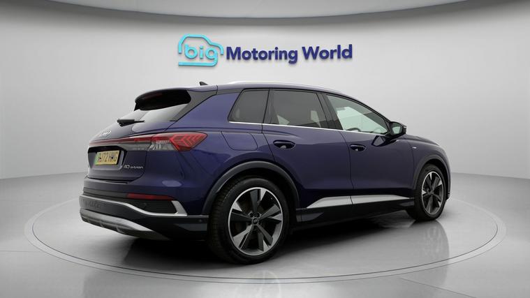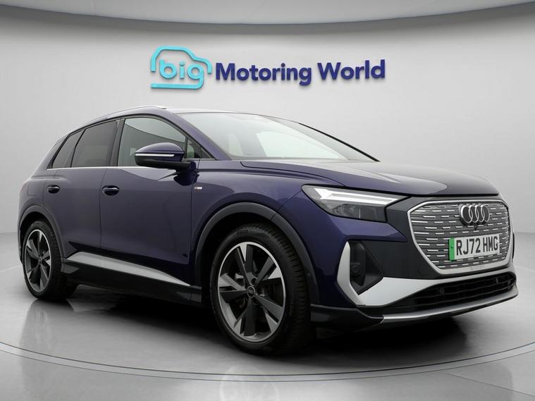 Our Audi Q4 e-tron is finished in Blue. Specification includes a range of fantastic features including £500 towards your finance deposit, Digital Cockpit, Privacy Glass, Heated Seats, Virtual Cockpit, Bluetooth, Audi Connect, 3 Zone Climate, Keyless Go, DAB Radio Specification information is supplied by CAPHPI and may vary to the actual car. This data does not form any part of a buying contact. Please check specification prior to purchase in-store. The MOT is valid until October 2026, visit dealer's website for more photos, a 360 tour, service history and a free HPI report.