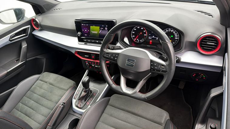 Our SEAT Arona is finished in Black. Specification includes a range of fantastic features including 18'' alloy wheels, Part Leather Seats, Lane Assist, Privacy Glass, Bluetooth, Parking Sensors, Ambient Lighting, Flat Bottom Steering Wheel, Paddle Shift, 2 Zone Climate Specification information is supplied by CAPHPI and may vary to the actual car. This data does not form any part of a buying contact. Please check specification prior to purchase in-store. The MOT is valid until February 2027, visit dealer's website for more photos, a 360 tour, service history and a free HPI report.