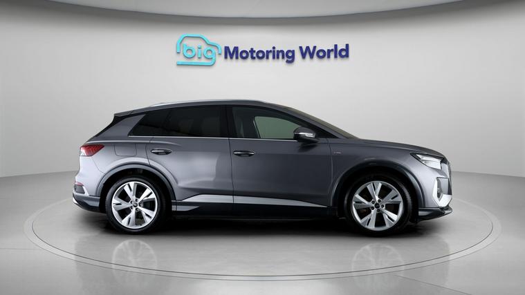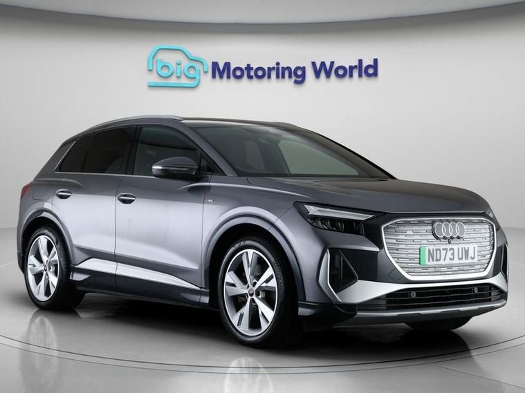 Our Audi Q4 e-tron is finished in Grey. Specification includes a range of fantastic features including £500 towards your finance deposit, Part Leather Seats, Apple CarPlay, Lane Assist, S Line Body Styling, Android Auto, Satellite Navigation, Privacy Glass, Heated Seats, Bluetooth Specification information is supplied by CAPHPI and may vary to the actual car. This data does not form any part of a buying contact. Please check specification prior to purchase in-store. The MOT is valid until November 2026, visit dealer's website for more photos, a 360 tour, service history and a free HPI report.