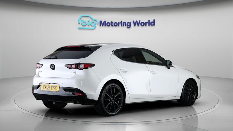 Our Mazda Mazda3 is finished in White. Specification includes a range of fantastic features including Head up Display, 18'' alloy wheels, Privacy Glass, Heated Steering Wheel, Bluetooth, Blind Spot Assist, Bose, Parking Sensors, Adaptive LED Headlights, 2 Zone Climate Specification information is supplied by CAPHPI and may vary to the actual car. This data does not form any part of a buying contact. Please check specification prior to purchase in-store. The MOT is valid until March 2027, visit dealer's website for more photos, a 360 tour, service history and a free HPI report.