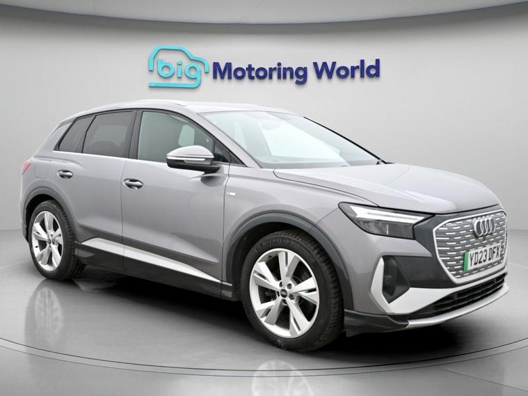 Our Audi Q4 e-tron is finished in Grey. Specification includes a range of fantastic features including £500 towards your finance deposit, Digital Cockpit, Privacy Glass, Heated Seats, Virtual Cockpit, Bluetooth, Audi Connect, 3 Zone Climate, Keyless Go, DAB Radio Specification information is supplied by CAPHPI and may vary to the actual car. This data does not form any part of a buying contact. Please check specification prior to purchase in-store. The MOT is valid until March 2027, visit dealer's website for more photos, a 360 tour, service history and a free HPI report.