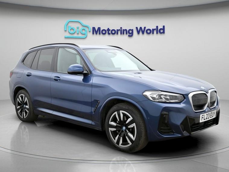 Our BMW iX3 is finished in Blue. Specification includes a range of fantastic features including £500 towards your finance deposit, Panoramic Roof, Sun Protection Pack, 19'' Alloy wheels, Leather Seats, Apple CarPlay, Adaptive Cruise Control, Electric Seats, Privacy Glass, Heated Seats Specification information is supplied by CAPHPI and may vary to the actual car. This data does not form any part of a buying contact. Please check specification prior to purchase in-store. The MOT is valid until March 2027, visit dealer's website for more photos, a 360 tour, service history and a free HPI report.