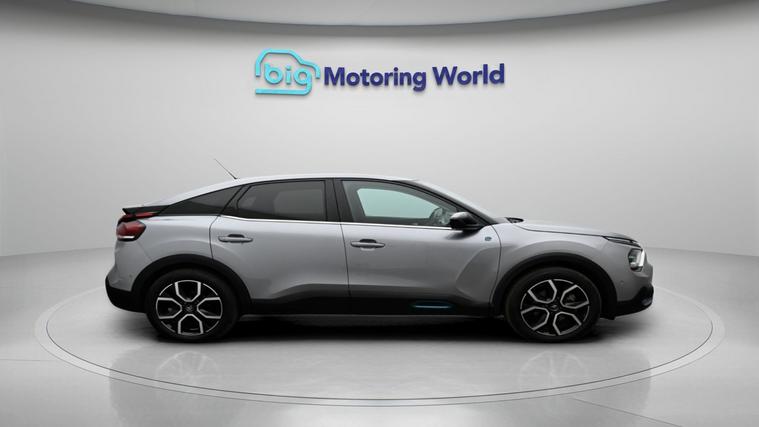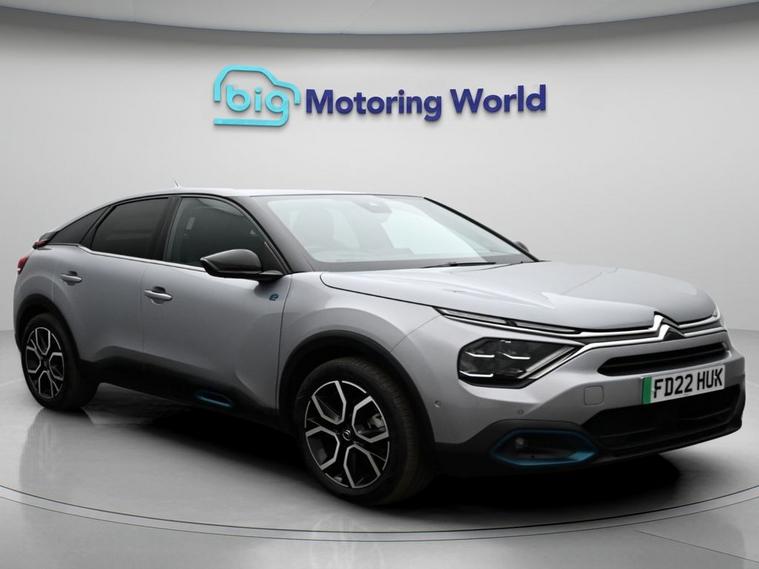 Our Citroen e-C4 is finished in Grey. Specification includes a range of fantastic features including Head up Display, 18'' alloy wheels, Heated Seats, Heated Steering Wheel, Bluetooth, Blind Spot Assist, Parking Sensors, Ambient Lighting, 2 Zone Climate, DAB Radio Specification information is supplied by CAPHPI and may vary to the actual car. This data does not form any part of a buying contact. Please check specification prior to purchase in-store. The MOT is valid until March 2027, visit dealer's website for more photos, a 360 tour, service history and a free HPI report.