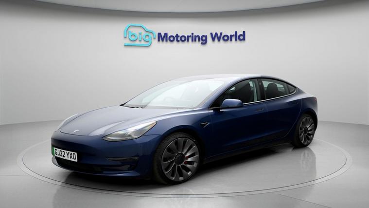 Our Tesla Model 3 is finished in Blue. Specification includes a range of fantastic features including Panoramic Roof, All Wheel Drive, 20'' Alloy Wheels, Leather Seats, Adaptive Cruise Control, Satellite Navigation, Heated Seats, Wireless Phone Charging, Rear View Camera, Heated Rear Seats Specification information is supplied by CAPHPI and may vary to the actual car. This data does not form any part of a buying contact. Please check specification prior to purchase in-store. The MOT is valid until March 2027, visit dealer's website for more photos, a 360 tour, service history and a free HPI report.