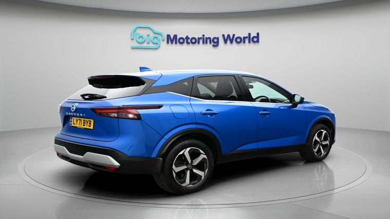 Our Nissan Qashqai is finished in Blue. Specification includes a range of fantastic features including Panoramic Roof, 18'' alloy wheels, Privacy Glass, Rear View Camera, Bluetooth, Blind Spot Assist, Parking Sensors, Ambient Lighting, 2 Zone Climate, Cruise Control Specification information is supplied by CAPHPI and may vary to the actual car. This data does not form any part of a buying contact. Please check specification prior to purchase in-store. The MOT is valid until March 2027, visit dealer's website for more photos, a 360 tour, service history and a free HPI report.
