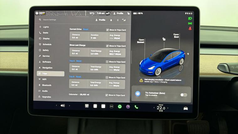 Our Tesla Model 3 is finished in Blue. Specification includes a range of fantastic features including Panoramic Roof, All Wheel Drive, Leather Seats, Adaptive Cruise Control, Satellite Navigation, Heated Seats, Wireless Phone Charging, Rear View Camera, Heated Rear Seats, Heated Steering Wheel Specification information is supplied by CAPHPI and may vary to the actual car. This data  does not form any part of a buying contact. Please check specification prior to purchase in-store. The MOT is valid until February 2027, visit dealer's website for more photos, a 360 tour, service history and a free HPI report.