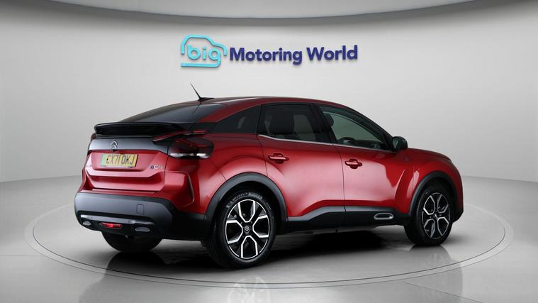 Our Citroen e-C4 is finished in Red. Specification includes a range of fantastic features including Head up Display, 18'' alloy wheels, Heated Seats, Heated Steering Wheel, Bluetooth, Blind Spot Assist, Parking Sensors, Ambient Lighting, 2 Zone Climate, DAB Radio Specification information is supplied by CAPHPI and may vary to the actual car. This data does not form any part of a buying contact. Please check specification prior to purchase in-store. The MOT is valid until March 2027, visit dealer's website for more photos, a 360 tour, service history and a free HPI report.