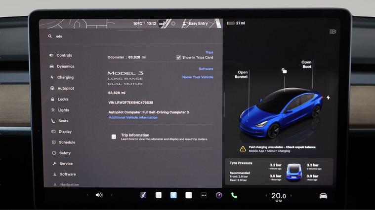 Our Tesla Model 3 is finished in Blue. Specification includes a range of fantastic features including All Wheel Drive, Leather Seats, Adaptive Cruise Control, Satellite Navigation, Heated Seats, Wireless Phone Charging, Heated Rear Seats, Heated Steering Wheel, Bluetooth, Blind Spot Assist Specification information is supplied by CAPHPI and may vary to the actual car. This data does not form any part of a buying contact. Please check specification prior to purchase in-store. The MOT is valid until March 2027, visit dealer's website for more photos, a 360 tour, service history and a free HPI report.