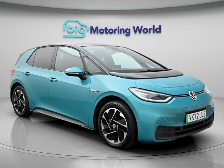 Our Volkswagen ID.3 comes with optional extras worth £1, 325. Specification includes a range of fantastic features including 18'' alloy wheels, Apple CarPlay, Adaptive Cruise Control, Lane Assist, Privacy Glass, Gesture Control, Internet, Bluetooth, Blind Spot Assist, Parking Sensors Specification information is supplied by CAPHPI and may vary to the actual car. This data does not form any part of a buying contact. Please check specification prior to purchase in-store. The MOT is valid until December 2026, visit dealer's website for more photos, a 360 tour, service history and a free HPI report.