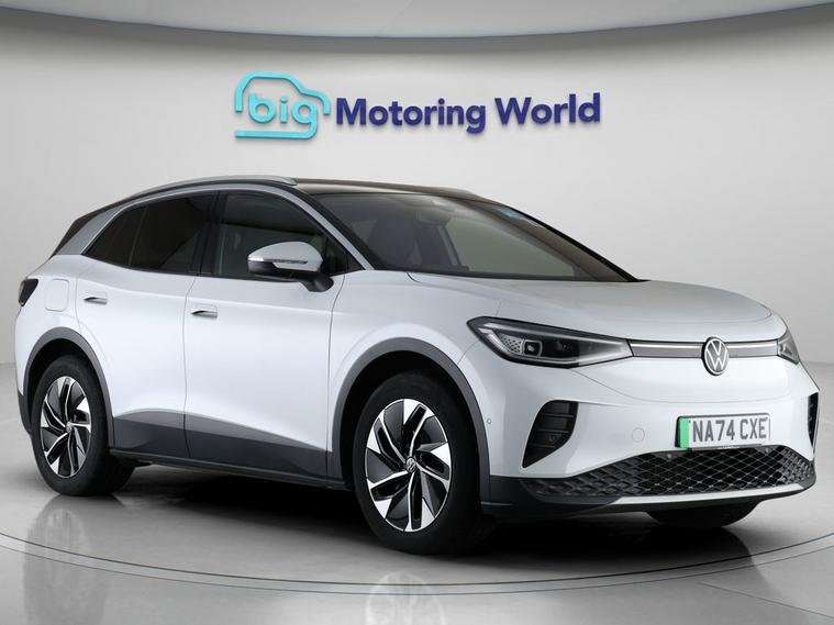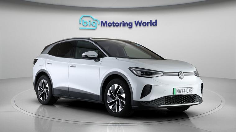Our Volkswagen ID.4 is finished in White. Specification includes a range of fantastic features including Adaptive Cruise Control, Heated Seats, Gesture Tailgate, Heated Steering Wheel, Parking Sensors, Ambient Lighting, 2 Zone Climate, Cruise Control, Climate Control, Voice Control Specification information is supplied by CAPHPI and may vary to the actual car. This data does not form any part of a buying contact. Please check specification prior to purchase in-store. The MOT is valid until October 2027, visit dealer's website for more photos, a 360 tour, service history and a free HPI report.