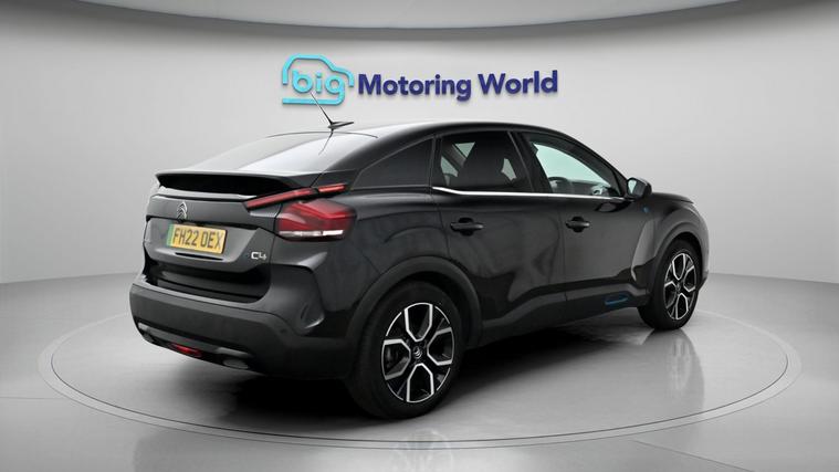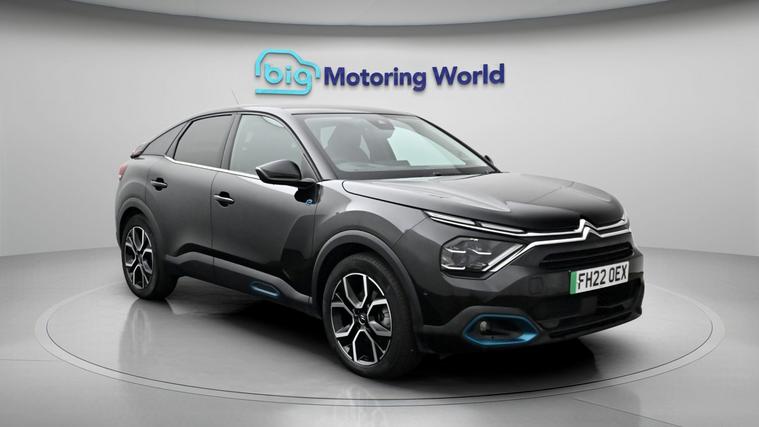 Our Citroen e-C4 is finished in Black. Specification includes a range of fantastic features including Head up Display, 18'' alloy wheels, Privacy Glass, Heated Seats, Wireless Phone Charging, Heated Steering Wheel, Bluetooth, Blind Spot Assist, Parking Sensors, Ambient Lighting Specification information is supplied by CAPHPI and may vary to the actual car. This data does not form any part of a buying contact. Please check specification prior to purchase in-store. The MOT is valid until April 2027, visit dealer's website for more photos, a 360 tour, service history and a free HPI report.