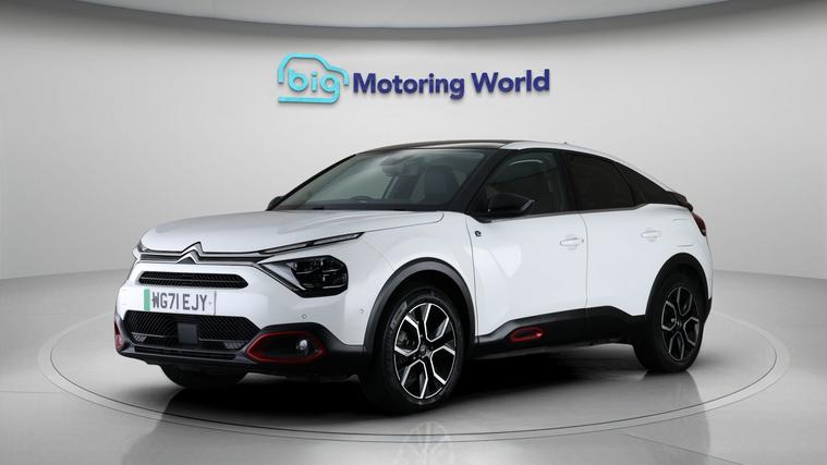 Our Citroen e-C4 is finished in White. Specification includes a range of fantastic features including Head up Display, 18'' alloy wheels, Privacy Glass, Heated Seats, Wireless Phone Charging, Heated Steering Wheel, Bluetooth, Blind Spot Assist, Parking Sensors, Ambient Lighting Specification information is supplied by CAPHPI and may vary to the actual car. This data does not form any part of a buying contact. Please check specification prior to purchase in-store. The MOT is valid until February 2027, visit dealer's website for more photos, a 360 tour, service history and a free HPI report.