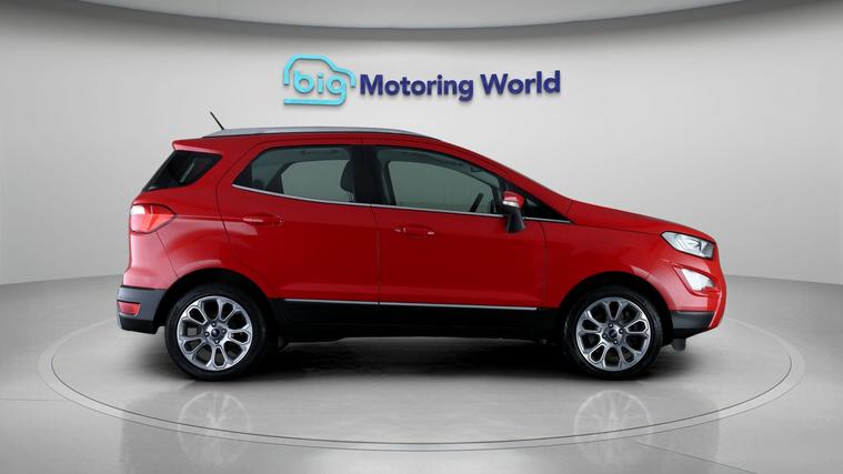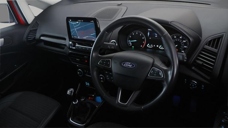 Our Ford EcoSport is finished in Red. Specification includes a range of fantastic features including 17'' Alloy Wheels, Part Leather Seats, Apple CarPlay, Cooled Glovebox, Ford SYNC, Heated Windscreen, Rear View Camera, Bluetooth, Parking Sensors, Ambient Lighting Specification information is supplied by CAPHPI and may vary to the actual car. This data does not form any part of a buying contact. Please check specification prior to purchase in-store. The MOT is valid until March 2027, visit dealer's website for more photos, a 360 tour, service history and a free HPI report.