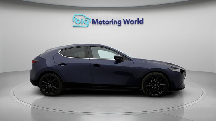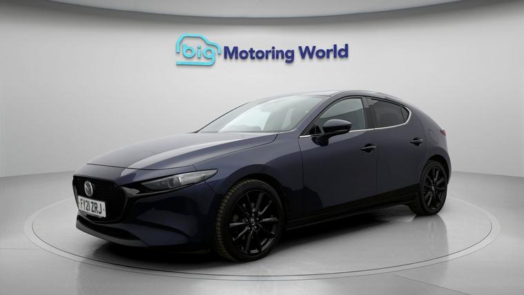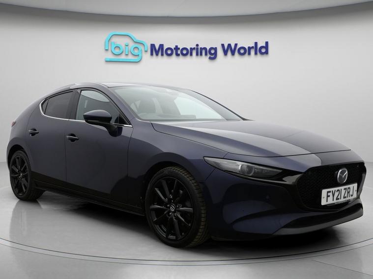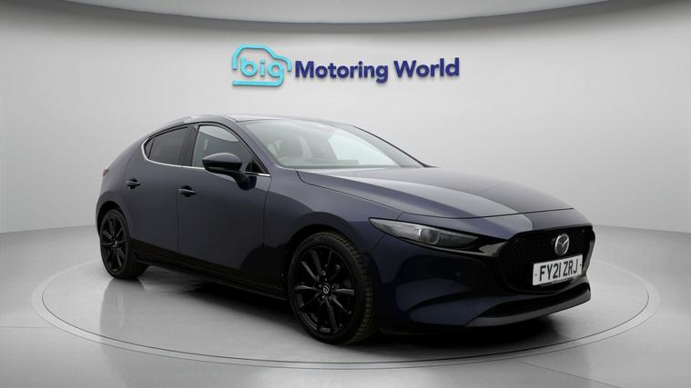 Our Mazda Mazda3 is finished in Blue. Specification includes a range of fantastic features including Head up Display, 18'' alloy wheels, Apple CarPlay, Electric Panoramic Roof, Privacy Glass, Bluetooth, Blind Spot Assist, Parking Sensors, Adaptive LED Headlights, 2 Zone Climate Specification information is supplied by CAPHPI and may vary to the actual car. This data does not form any part of a buying contact. Please check specification prior to purchase in-store. The MOT is valid until April 2027, visit dealer's website for more photos, a 360 tour, service history and a free HPI report.