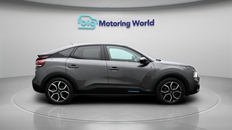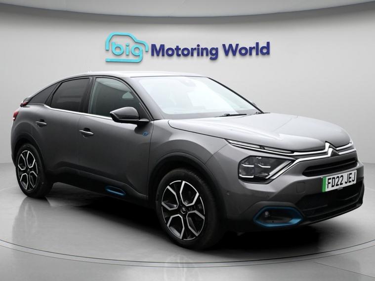 Our Citroen e-C4 is finished in Grey. Specification includes a range of fantastic features including Head up Display, 18'' alloy wheels, Privacy Glass, Heated Seats, Wireless Phone Charging, Heated Steering Wheel, Bluetooth, Blind Spot Assist, Parking Sensors, Ambient Lighting Specification information is supplied by CAPHPI and may vary to the actual car. This data does not form any part of a buying contact. Please check specification prior to purchase in-store. The MOT is valid until April 2027, visit dealer's website for more photos, a 360 tour, service history and a free HPI report.