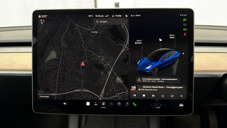 Our Tesla Model 3 is finished in Blue. Specification includes a range of fantastic features including Panoramic Roof, All Wheel Drive, 18'' alloy wheels, Leather Seats, Adaptive Cruise Control, Satellite Navigation, Heated Seats, Wireless Phone Charging, Rear View Camera, Heated Rear Seats Specification information is supplied by CAPHPI and may vary to the actual car. This data does not form any part of a buying contact. Please check specification prior to purchase in-store. The MOT is valid until March 2027, visit dealer's website for more photos, a 360 tour, service history and a free HPI report.