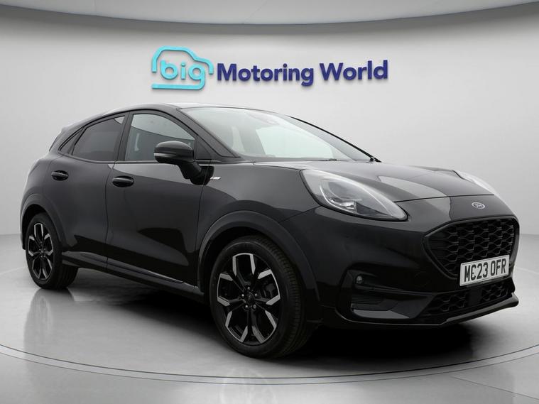 Our Ford Puma is finished in Black. Specification includes a range of fantastic features including Part Leather Seats, Satellite Navigation, Ford SYNC, Privacy Glass, ST Style Pack, Heated Windscreen, Wireless Phone Charging, Bluetooth, Parking Sensors, Flat Bottom Steering Wheel Specification information is supplied by CAPHPI and may vary to the actual car. This data does not form any part of a buying contact. Please check specification prior to purchase in-store. The MOT is valid until April 2027, visit dealer's website for more photos, a 360 tour, service history and a free HPI report.