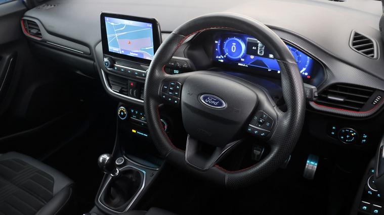 Our Ford Puma is finished in Blue. Specification includes a range of fantastic features including Satellite Navigation, Ford SYNC, Privacy Glass, ST Style Pack, Heated Windscreen, Wireless Phone Charging, Bluetooth, Parking Sensors, Flat Bottom Steering Wheel, Cruise Control Specification information is supplied by CAPHPI and may vary to the actual car. This data does not form any part of a buying contact. Please check specification prior to purchase in-store. The MOT is valid until April 2027, visit dealer's website for more photos, a 360 tour, service history and a free HPI report.