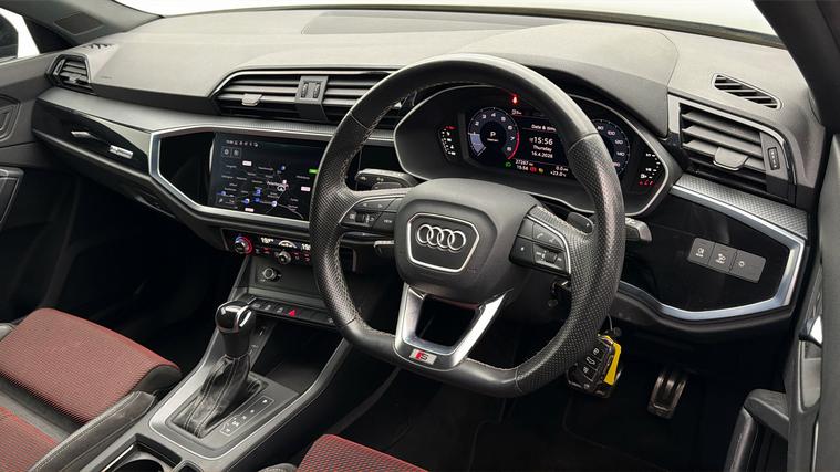 Our Audi Q3 is finished in Black. Specification includes a range of fantastic features including Part Leather Seats, Lane Assist, S Line Body Styling, Satellite Navigation, Privacy Glass, Bluetooth, Parking Sensors, Audi Connect, Flat Bottom Steering Wheel, Paddle Shift Specification information is supplied by CAPHPI and may vary to the actual car. This data does not form any part of a buying contact. Please check specification prior to purchase in-store. The MOT is valid until April 2027, visit dealer's website for more photos, a 360 tour, service history and a free HPI report.