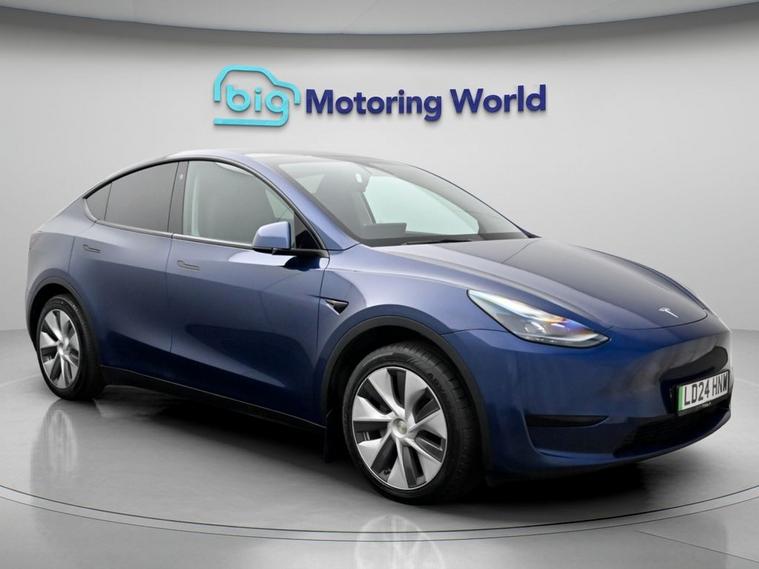Our Tesla Model Y is finished in Blue. Specification includes a range of fantastic features including Panoramic Roof, Leather Seats, Satellite Navigation, Privacy Glass, Heated Seats, Wireless Phone Charging, Rear View Camera, Heated Rear Seats, Heated Steering Wheel, Bluetooth Specification information is supplied by CAPHPI and may vary to the actual car. This data does not form any part of a buying contact. Please check specification prior to purchase in-store. The MOT is valid until April 2027, visit dealer's website for more photos, a 360 tour, service history and a free HPI report.