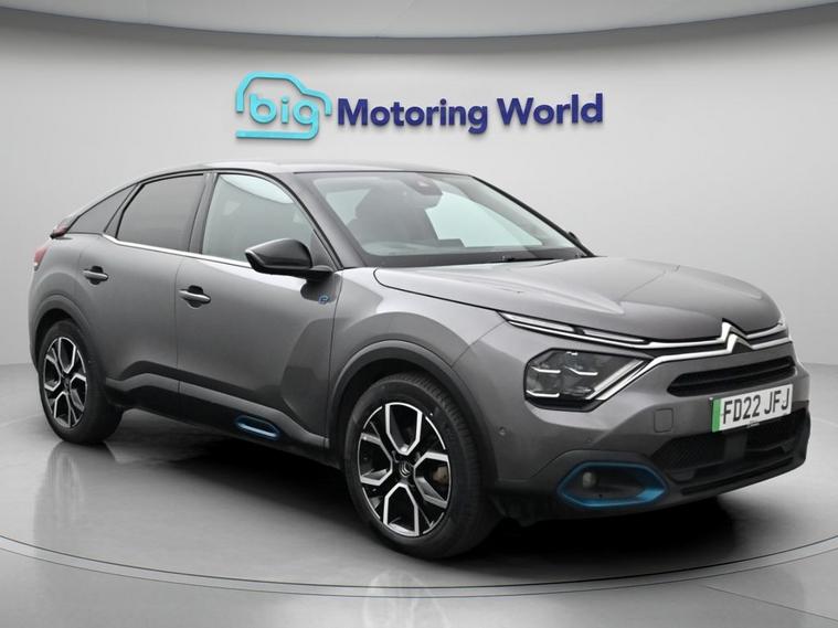 Our Citroen e-C4 is finished in Grey. Specification includes a range of fantastic features including Head up Display, 18'' alloy wheels, Privacy Glass, Heated Seats, Wireless Phone Charging, Heated Steering Wheel, Bluetooth, Blind Spot Assist, Parking Sensors, Ambient Lighting Specification information is supplied by CAPHPI and may vary to the actual car. This data does not form any part of a buying contact. Please check specification prior to purchase in-store. The MOT is valid until April 2027, visit dealer's website for more photos, a 360 tour, service history and a free HPI report.